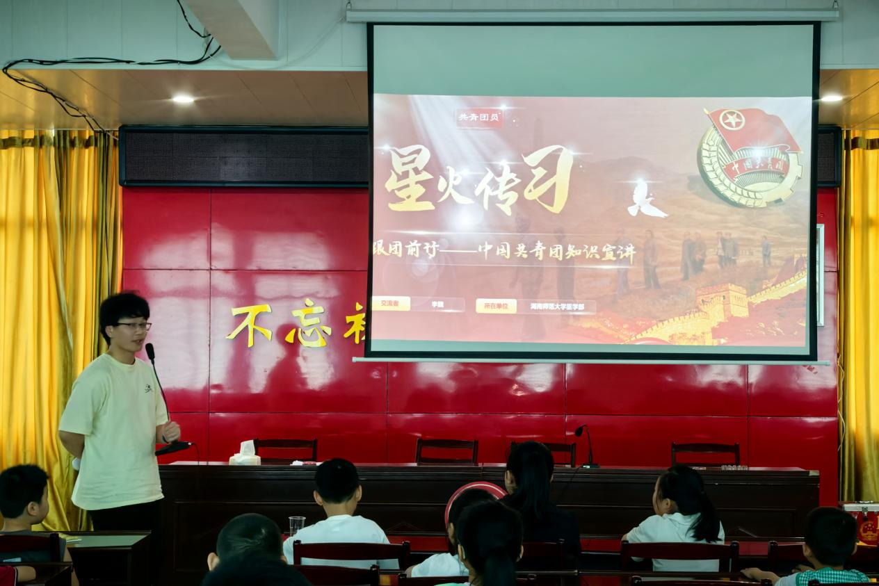 红色论坛课程由实践团成员李魏主讲。课程围绕中国共青团展开,系统介绍了中国共青团的发展历程、组织架构及入团流程等内容。课程展播《重逢》共青团中央五四微电影,其描绘一代代青年为民族富强、人民幸福拼搏的身影,展现青年一代的使命担当。课程采用互动问答形式,帮助当地青少年更好地理解中国共产党的执政理念,同时也帮助部分即将迈入初中的学生提前了解团员选拔与政治理论。