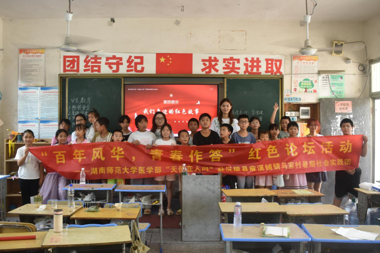 7月16日上午,医学部“天使在人间”暑期实践团于沅陵县麻溪铺九校开展红色论坛活动。团队成员佘雪琪、陈子睿担任主讲人。