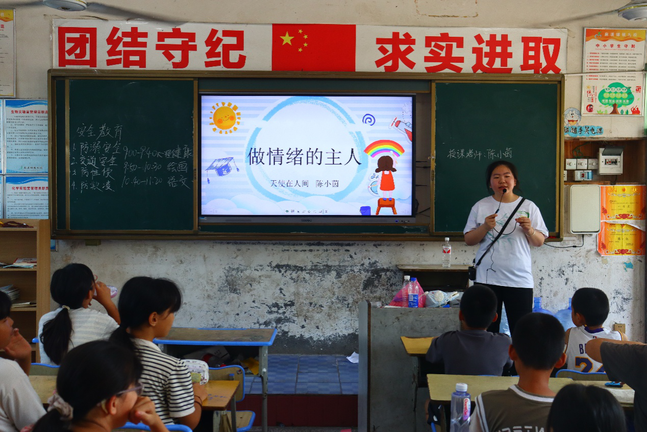 为帮助乡村学生正确认识情绪、学会管理情绪,提升心理健康素养,7月15日上午,医学部“天使在人间”暑期社会实践团于麻溪铺镇九校开展心理健康教育课。实践团成员陈小茵担任课程主讲人。