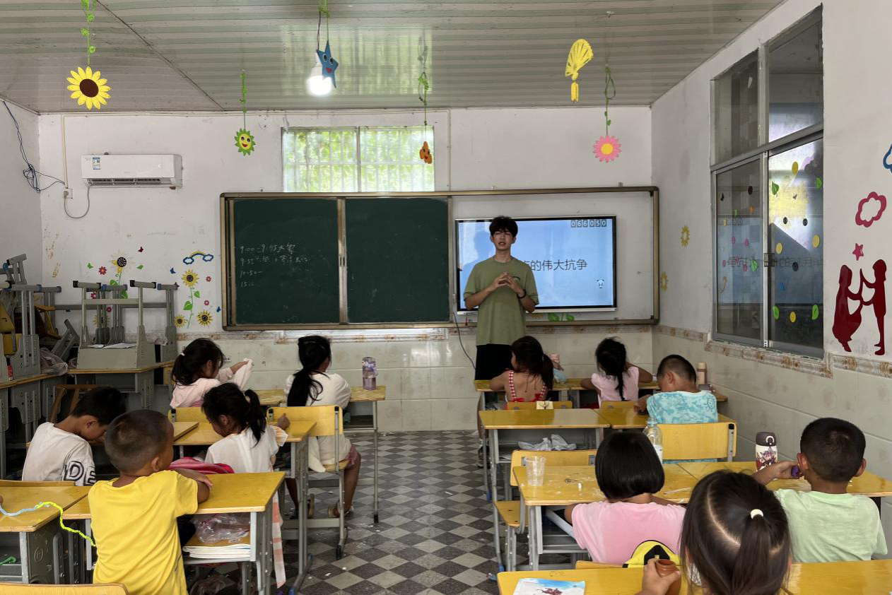 为了帮助乡村学生厚植家国情怀,筑牢理想信念,7月17日下午,“湘医传方”社会实践团于李家庄村委会组织开展了一堂红色文化课程。实践团成员刘钊担任授课主讲人,全体低年级学生参与了此次课程。